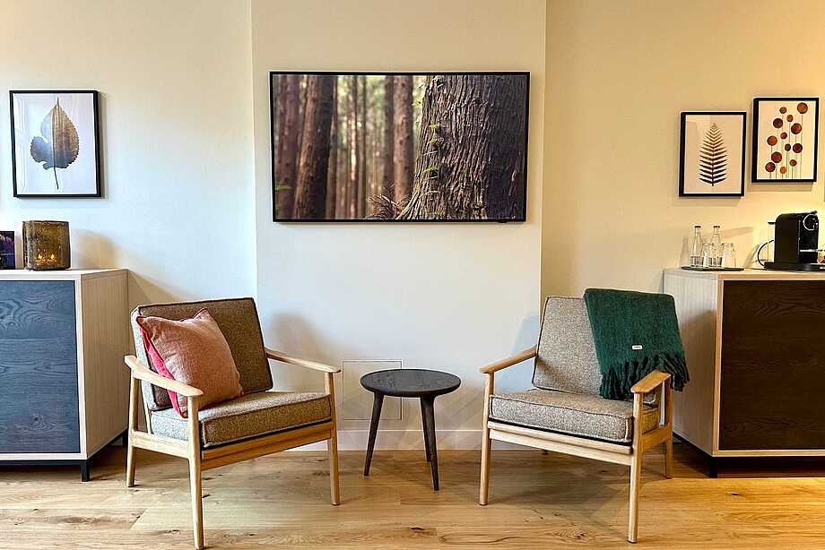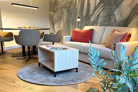 Our MUNTE - Premium Suite offers you state-of-the-art design and high-quality materials for rest and relaxation, as well as a pleasant atmosphere for working in the living area.