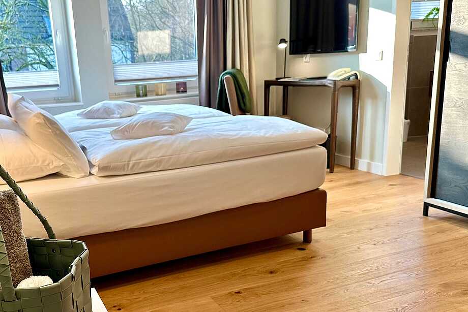 Our Deluxe rooms with a room size of approximately 33 square metres offer a cosy atmosphere and a modern and comfortable interior.