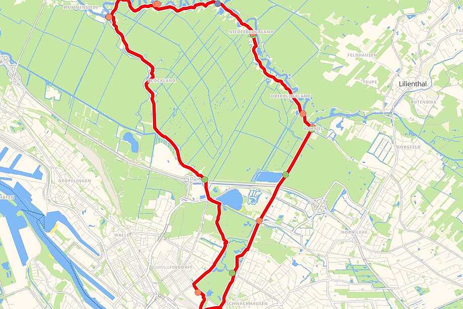 Die Tour gilt als Bremens schönstes Ausflugsziel, da sie durch viel Grün und vorbei an Kühen sowie zahlreichen Tieren führt.