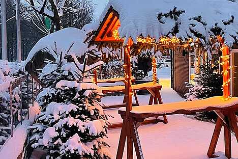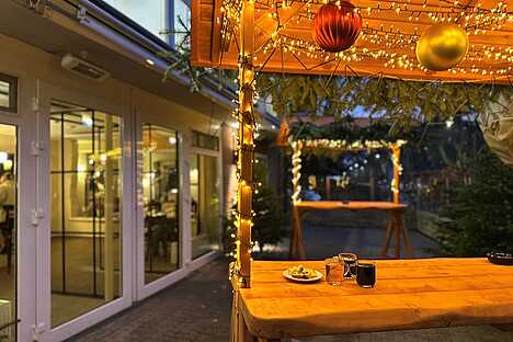 Glühweinstand auf der Terrasse im Winter